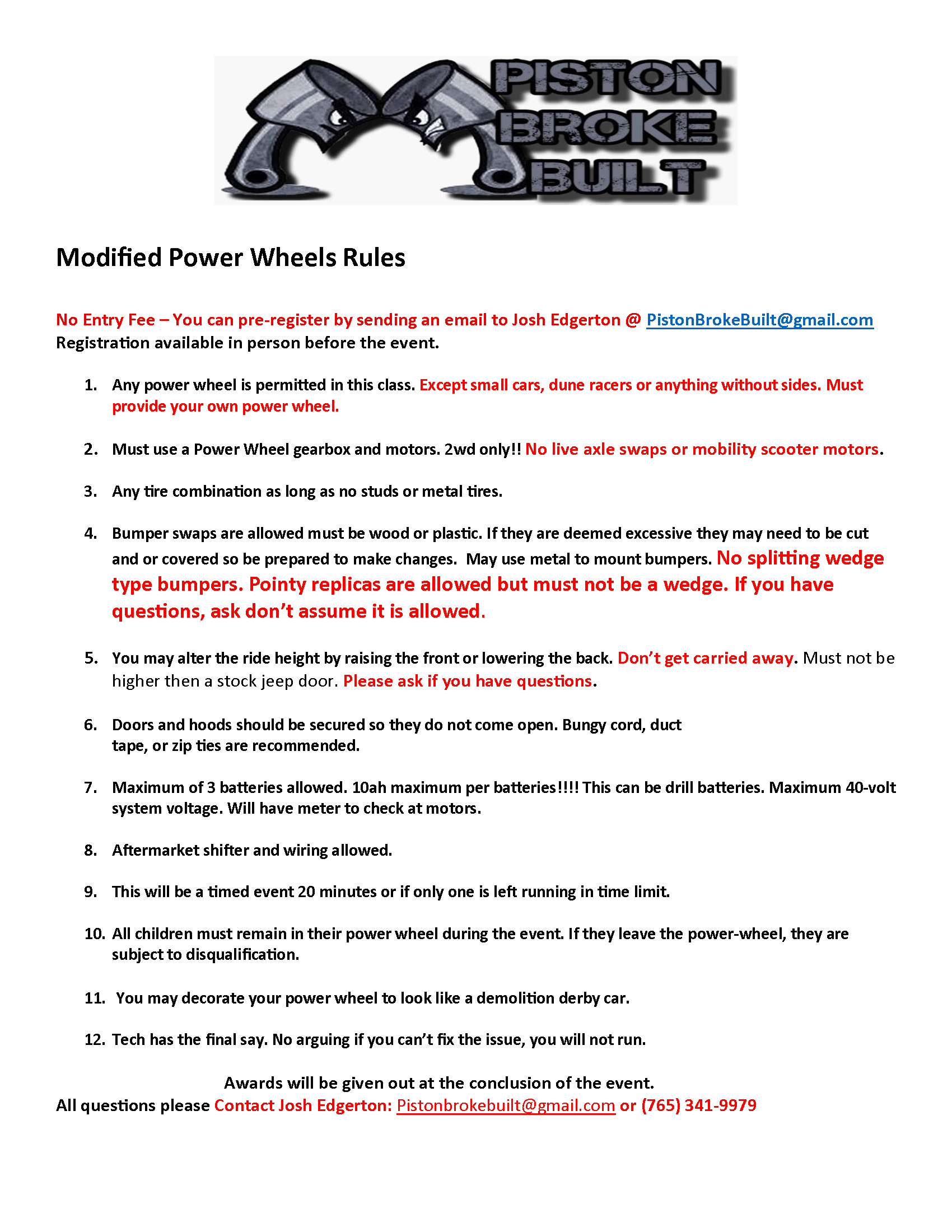 This will also be used for the Youth Full Size Rules.